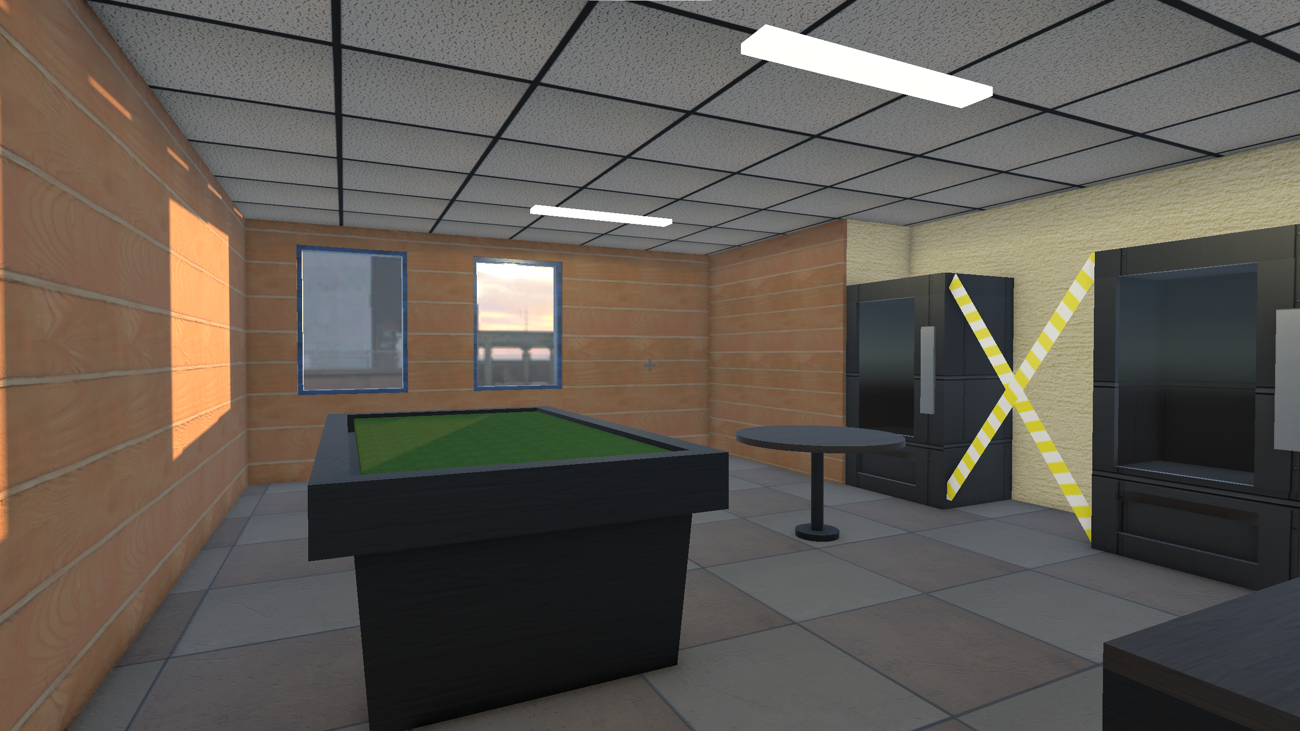 As an assignment for my VR, graphics and games module, I was tasked with creating a virtual building in Unity. I decided to recreate the precinct office from the sitcom Brooklyn Nine-Nine. I used Unity’s ProBuilder library to manipulate basic shapes to model the building and included a number of additional interaction features to the world with C# scripts, notably a microwave and elevator starting area. I also played around with Unity’s lighting settings to properly emulate the building’s interior light, as well as the setting sun on the skyline.