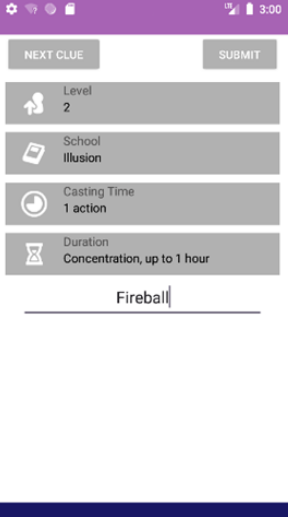 For my Java Programming module at university, I was asked to make an app using Java and Android Studio. I decided to combine my interests in game development and Dungeons & Dragons to produce a daily puzzle game in the vein of Wordle. The game provides the player with a series of clues towards a spell from D&D’s 5th Edition. The player has a total of 5 guesses they can make before they lose, and the game uses Google Firebase to handle user accounts that track a player’s win streak.